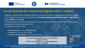 CURSURI GRATUITE DE COMPETENȚE DIGITALE PENTRU CETĂȚENI Cursuri gratuite de competențe digitale pentru cetățeni By primaria|2026-03-12T10:21:35+03:0012.03.2026|Știri|Comentariile sunt închise pentru CURSURI GRATUITE DE COMPETENȚE DIGITALE PENTRU CETĂȚENI